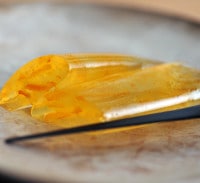 愛媛県産の香り高いゆずをわらび粉で煉り上げ「わらびもち」をつくりました。上品なゆずの香りと、わらびもちの弾力をお楽しみください。ひんやり冷やしてお召し上がりください。