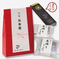 今年一年の感謝の気持ちを込めて 幸運の777円 で、来福おみくじ付き「プチ福袋」をつくりました。袋の中身は 煉り菓子2種「葛煉り黒蜜」「葛煉り黒ごま」から2つお選びいただけます。また 7袋中1袋に「当たりくじ」として「ゆずわらび」のおまけつき。楽しみに開封ください。
